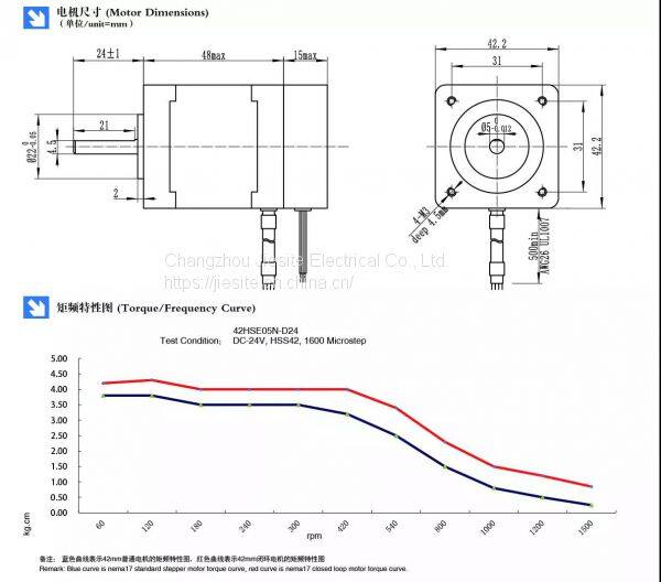 | 42HSE05N-D24 | 1.8° | 1.5 | 2.8 | 5.5 | 0.55 | 48 | 2500 | 0.45 |