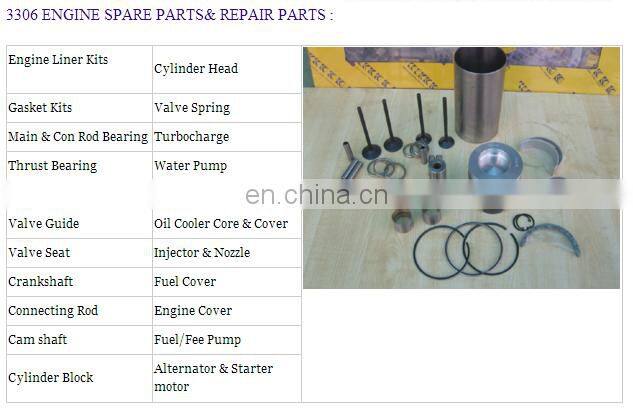 Cylinder block, Cylinder head, Crankshaft, Camshaft, Connecting rod, Engine assy, Injector, Fuel injection pump, Oil pump, Feed pump, Oil cooler, Filter, Turbo charger, Starter, Alternator, Water pump, Fan blade, Liner kits, Bearings, Valves, Gasket kit, etc.