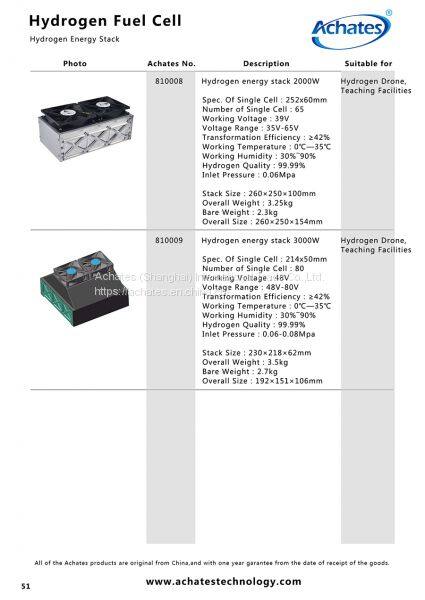 Spec. Of Single Cell:214x50mm Number of Single Cell:80 Working Voltage:48V Voltage Range:48V-80V Transformation Efficiency:≥42% Working Temperature:0℃—35℃ Working Humidity:30%―90% Hydrogen Quality:99.99% Inlet Pressure:0.06-0.08Mpa Stack Size:230×218×62mm Overall Weight:3.5kg Bare Weight:2.7kg Overall Size:192×151×106mm | |||