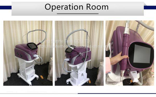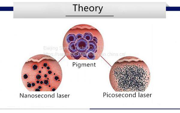 Compared with Q-switch nd yag laser, pico laser's pulse width is 2000ps, is very short, it can break the target area into more smaller pieces, and destroy the pigmentation without breaking the skin, no bleeding and no pain. So it needs shorter time to recovery and shorten the treatment times.
