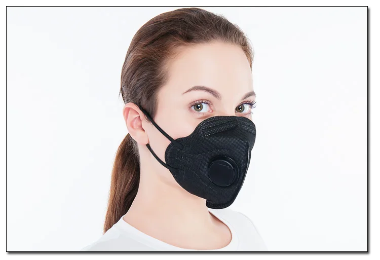 Eco Friendly Vertical Folding Valved Custom Mouth Mask Black