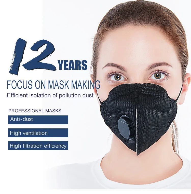 600pcs/carton Pm2.5 Activated Carbon Respirator Safety Ffp2 Black Anti Pollution Dust Mask