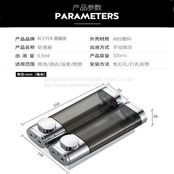 This product is a manual soap dispenser, which can be used for home, hotel, hospital or other places. It has the following features: