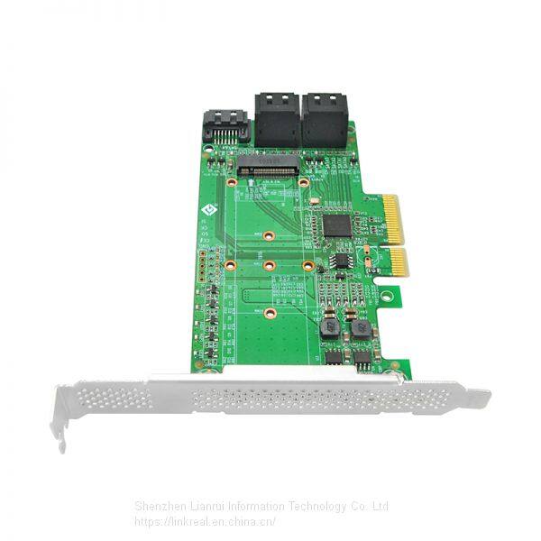 Linkreal SATA Expansion Card PCIe 3.0 x4 Gen 3 to Internal One M.2 B-Key & Quad SATA 6Gb/s Host Bus Adapter