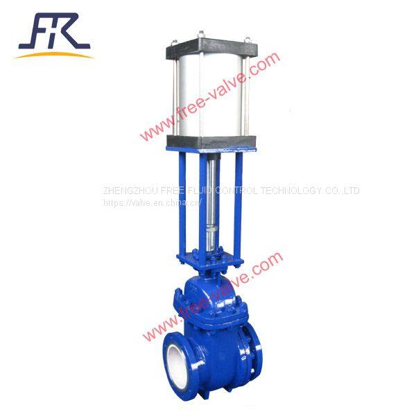 FREE-VALVE’s Pneumatic Ceramic slag dischage Gate Valves are a new type of wear-resistant slag discharge gate valve made of wear-resistant ceramic lining on the basis of common slag discharge valve which is easy to erosion and wear. It not only retains the advantages of gate valve structure, but also improves the performance of resistance to erosion and wear.The valve depends on the rise and fall of the disc to realize the opening and closing, the movement direction of the disc is perpendicular to the flow direction of the medium, cutting the medium by cutting the blade shaped disc of fiber material.The valves are widely used as opening and closing valve in hydraulic coal conveying, hydraulic slag discharging and mud conveying pipelines with high hardness particles.
