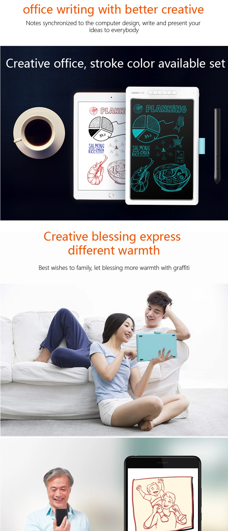 6. sync writing, one key erase, one key save, one key connect your mobile phone a by bluetooth, easy to use, the good helper for work, study and amusements;
