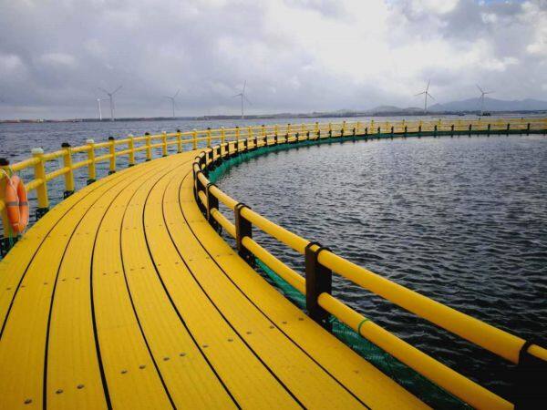 There are two kinds of fish world cage, square and round, mainly black blue stripe PE pipe. The pipe fittings are orange and black, which have a sharp contrast with the water surface, and the visual appearance is beautiful and atmospheric.
