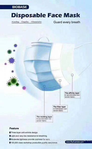Disposable 3ply Non Woven Fabric Mask Protective Equipment for Personal Care