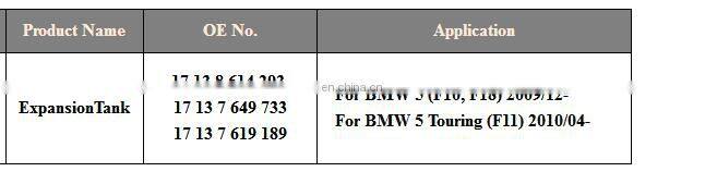 Home > Products > Other Parts > Genuine Auto Coolant Expansion Tank For F10/F11/F18 OEM #17138614293 #17137649733 #17137619189