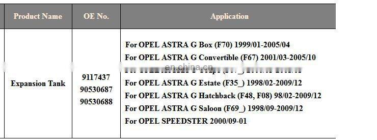 Home > Products > Other Parts > Hot Sale Coolant Radiator Tank # 1304223 # 9117437 # 90530687 # 90530688 for OPEL ASTRA G