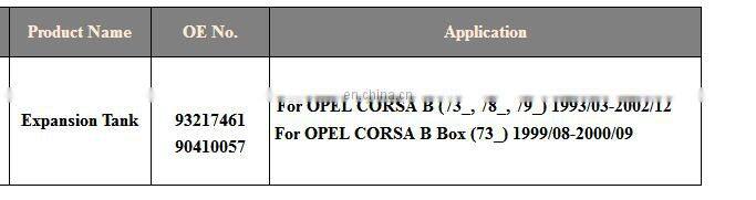 Best Selling Coolant Radiator Tank # 1304231 # 1304648 # 90410058 # 9129478 for OPEL CORSA B / TIGRA / COMBO