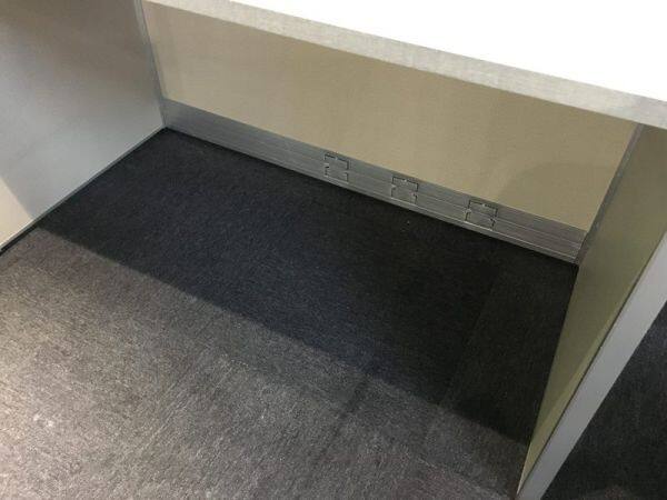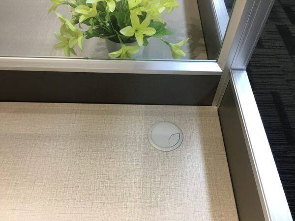 2. Q3 partition A: 2 pieces, 1200*1100H, Q3 30mm thick panel with 1.5~2.0mm thick grey aluminum frame. With hanging rails and cable ways.