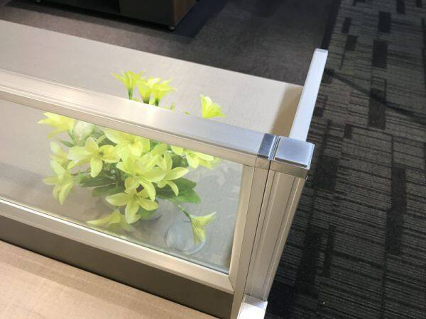 3.Q3 partition B: 6 pieces, 600*900H, Q3 30mm thick panel with 1.5~2.0mm grey thick aluminum frame. With hanging rails and cable ways.