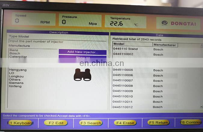 >>>CHARACTERISTIC 1. Controlled by industrial computer in real time, Windows operating system. 2. Oil quantity is measured by sensor and displayed on 10.4 tactile LCD screen; 3. More than 1000 kinds of injecotors data can be searched and used. 4. It is installed BOSCH common rail pump to provide 0~2000 bar 5. Rail pressure can be tested in real time, 6. Provide pressure overload protect 7. Pulse and frequency of the injector can be adjusted. 8. Injection time can be set. 9. Protection function of short-circuit. 10. Precise measurement, easy operation, low noise. 11.Frequency converter inside to keep the RPM.