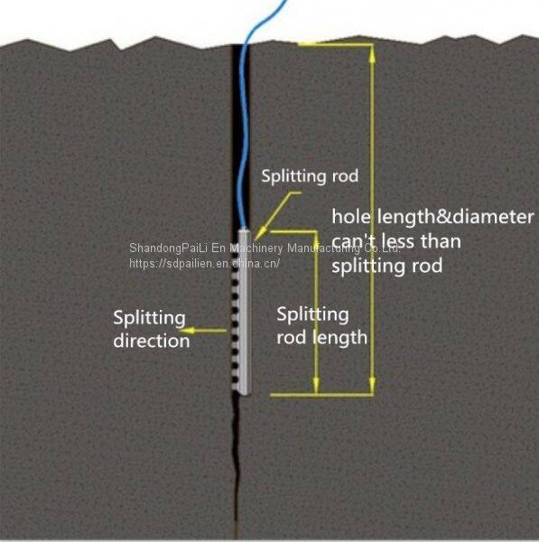 There are several pisons in the splitting rod, they can soar up together when inser into the hole, creating thousands tons splitting force instantly.