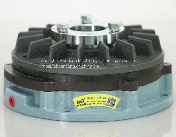 NAB model pneumatic friction brake is used to brake shaft. Non-asbestos friction pads with longer service life for continous friction during working.