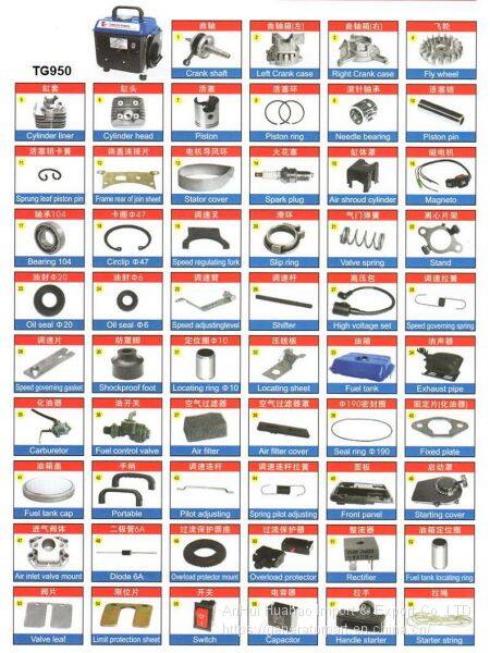 High Quality ET950 ET650 Generator Carburetor Piston Recoil Ignition Coil Spare Parts