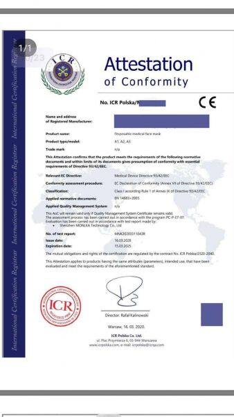 Standard | China GB2626-2006 KN95 = N95 = FFP2 |