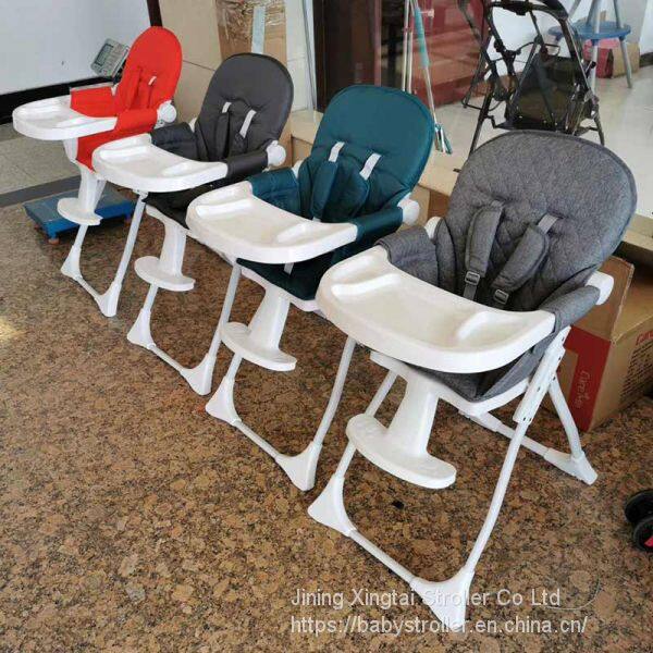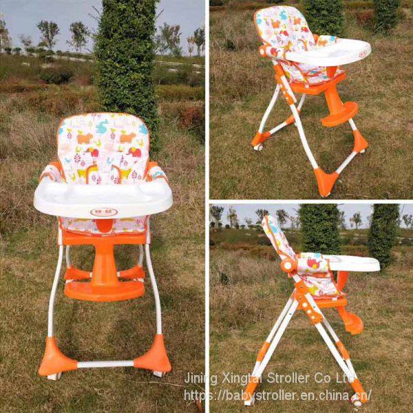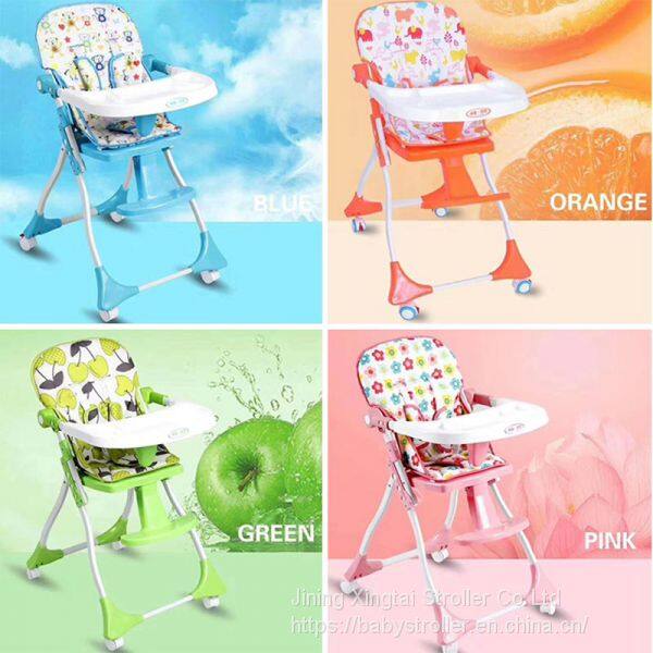 Feature: four wheels with brake, dinner plate can be disassembled, five-point seatbelt, folding up with one hand.