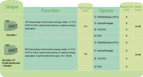 Acrel 300286 ADL3000-E/C Din Rail 3 Phase 3*220/380v 10(80)A Input Energy Meter Rs485US$ 76.3 - 76.3MOQ: 1 Piece