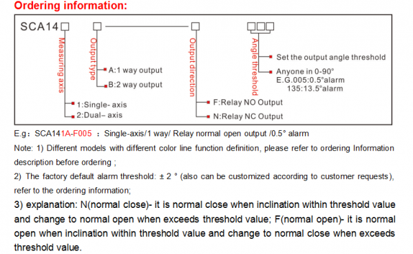 | Model Number | SCA141A | Usage | Other, angle alarm switch | |