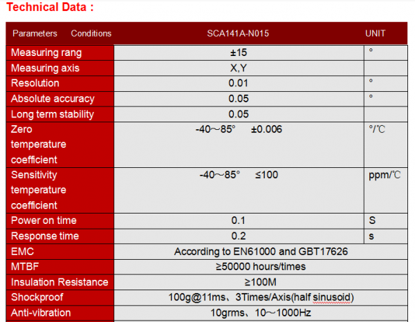 SCA110T 1-axis Inclinometer/tilt Sensor
