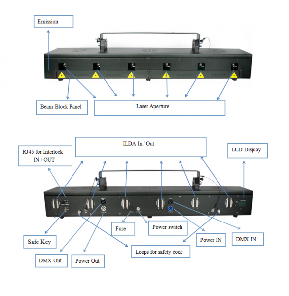 (R:1000mw/638nm; G: 1000mw/520nm; B: 2000w/445nm ) x 6 |