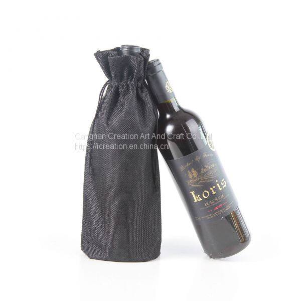 Wholesales Burlap Eco Wine Packaging Bag Jute Gift Pouch Black Hessian Hemp Drawstring Bag