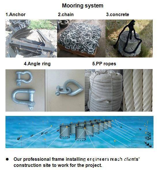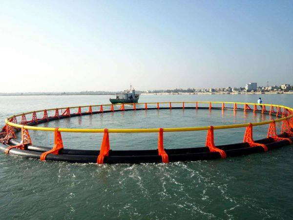 There are two kinds of fish world cage, square and round, mainly black blue stripe PE pipe. The pipe fittings are orange and black, which have a sharp contrast with the water surface, and the visual appearance is beautiful and atmospheric.