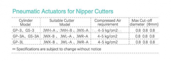 TROPHY Pneumatic Actuators for Nipper Cutters