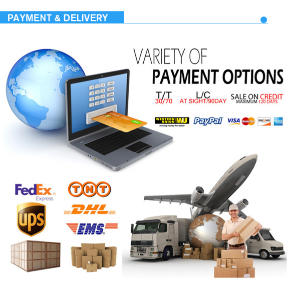 A: T/T 30% as deposit, and 70% before delivery. We'll show you the photos of the products and packages before you pay the balancing.