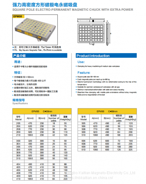 Factory Outlet NB KAITIAN Square Pole Electro-Permanent Magnetic Chuck With Extra Power