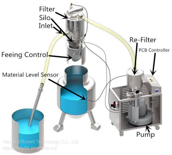 Vacuum feeder also known as vacuum conveyor, is a kind of dust-free airtight pipeline conveying equipment which transfers particles and powder materials by means of vacuum suction. It uses the difference of air pressure between vacuum and environment space to form gas flow in the pipeline, and drives the movement of powder materials, so as to complete powder conveying.