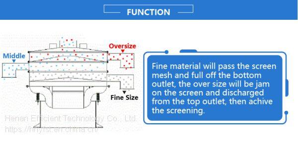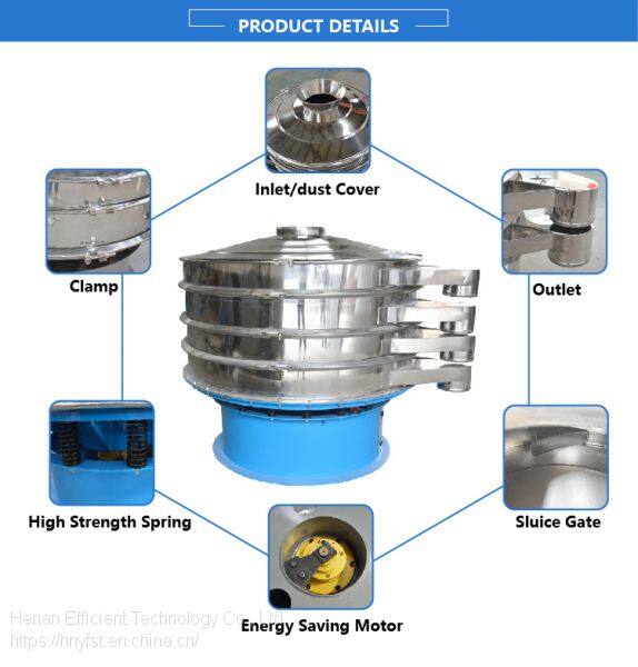 Rotary vibrating screen is designed for accurate grading or sizing of wet and dry materials up to five fractions in one operation, low noise, high efficiency, need only 3-5 minutes to rapidly replace the screen, all closed structure. Used to sieve guanule, powder and liquid.