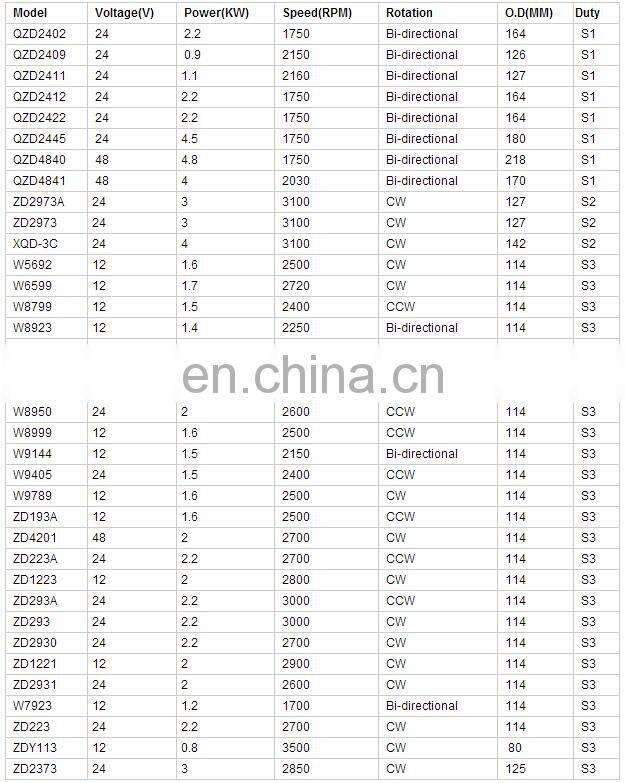 China Wuxi Factory 12v 1.6kw dc Motor for Electric Forklift CW