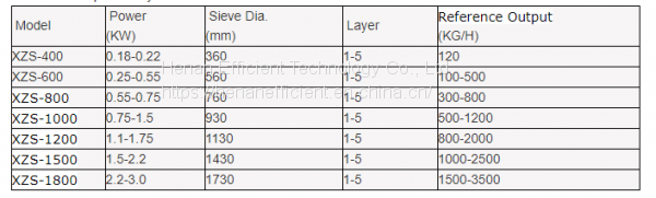 The following table shows some model of Industrial circular vibrating screen filter sieve for you to refer, we can also provide you with customize services.