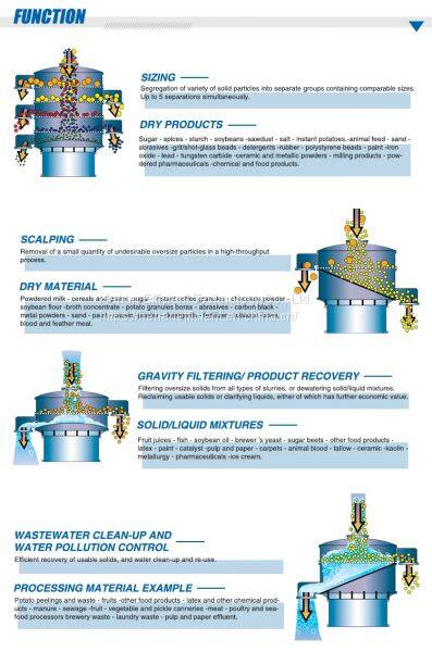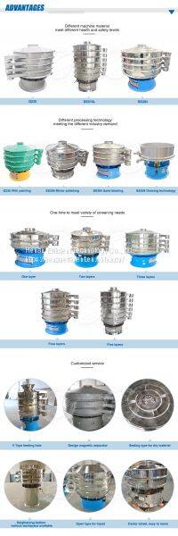 High-precision screening machinery rotary vibrating screen sieve is designed as a high-precision screening machinery. vibrator sieve sifter is composed of vertical motor,and eccentric weight installed at two ends.We can produce horizontal, vertical, inclined motions by adjusting the upper and lower eccentric weight.Material can be divided into all carbon steel,contact part stainless steel and all stainless steel.