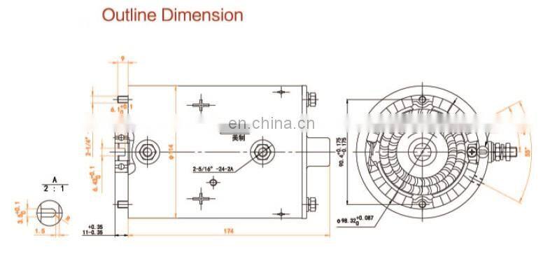 This type W9405 is a 24V 2.0KW dc motor with carbon brush .It is composed of a stator magnetic pole, a rotor (armature), a commutator (commonly referred to as a commutator), a brush, a casing, a bearing, and the like.