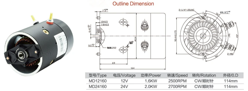 MD12160 | 12V | 1.6KW | 2500RPM | Clockwise | 114mm |