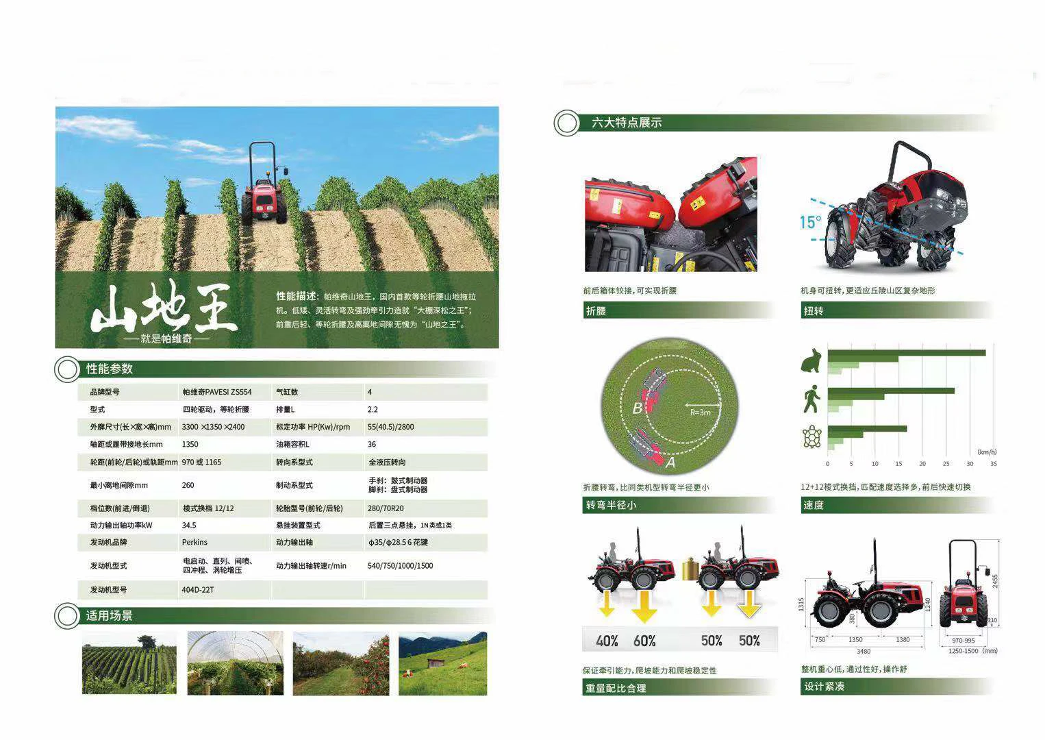 Pavesi tractors are suitable for rotary tillage, pear tillage, cockroach, ditching, spraying, soil, ridge, transportation and