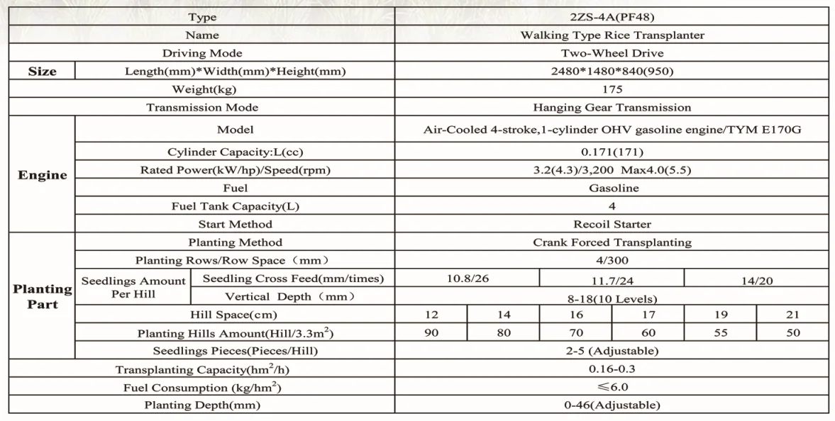 Agricultural Machine PF48 Walking Type Rice Transplanter