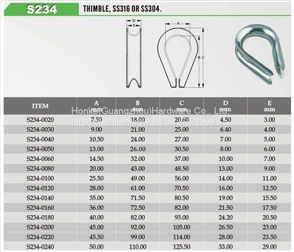 HKS234 Nickel White Color 316 Stainless Steel Rope Thimble