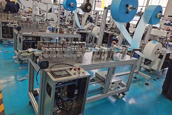 Filter material, the whole machine from the raw material into the nose line insertion, edge sealing, cutting finished products are a line of automation, according to the use of different raw materials, can reach different standards such as N95, FFP2. The equipment has stable performance, high yield, low defect rate and easy operation. Mask body machine plus several inner ear mask machine, outer ear mask machine, bandage mask machine or ear belt spot welding machine, can produce inner ear mask, outer ear mask, bandage mask and other kinds of masks.