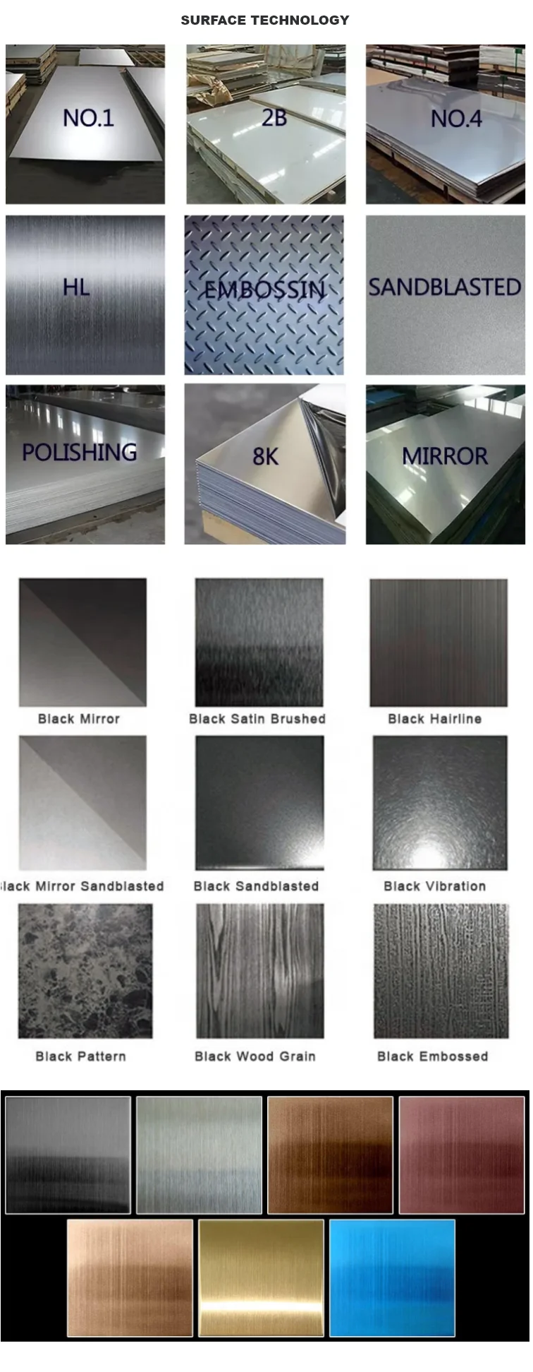 Surface | 2B,BA,HL,BK,NO.1,NO.4,8K,SB,etc |