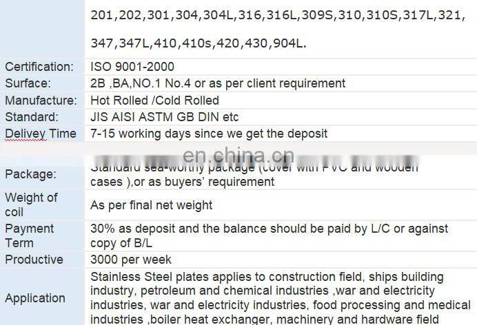 201 304 316 Stainless Steel Coil / Stainless Steel Plate / Stainless Steel Sheet