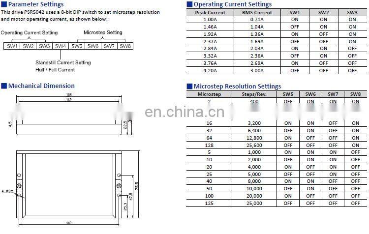 The stepper drive PSR5042 is a high performance microstepping driver based on pure sinusoidal current control technology.
