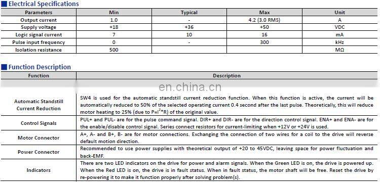 36VDC 4.2A Open Loop Stepper Motor Driver for NEMA 14 to NEMA 24 Motor