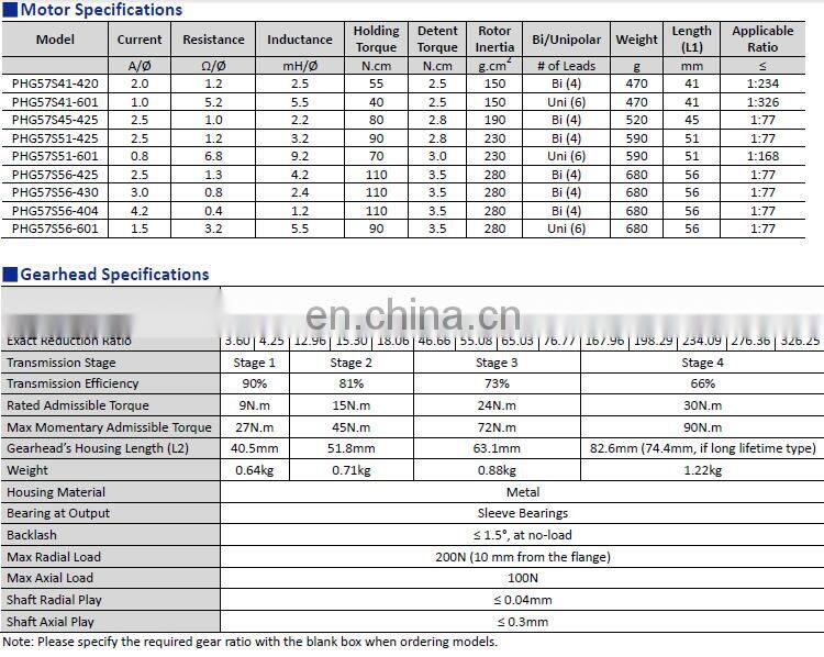 PrimoPal's PHG series hybrid stepper gearmotor offers a wide range of gear ratios to fulfill your project needs. The planetary gearhead (transmission series) and spur gearbox have been strictly tested to ensure long life and maximum efficiency. They are low-cost solutions and can perfectly meet your needs of motion or automation control. Besides, high precision gearhead, custom motor winding and gearhead specs are also available.