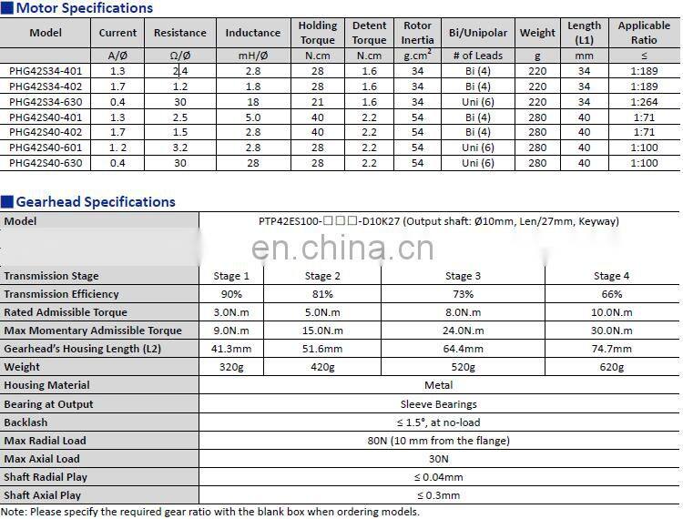 PrimoPal's PHG series hybrid stepper gearmotor offers a wide range of gear ratios to fulfill your project needs. The planetary gearhead (transmission series) and spur gearbox have been strictly tested to ensure long life and maximum efficiency. They are low-cost solutions and can perfectly meet your needs of motion or automation control. Besides, high precision gearhead, custom motor winding and gearhead specs are also available.
