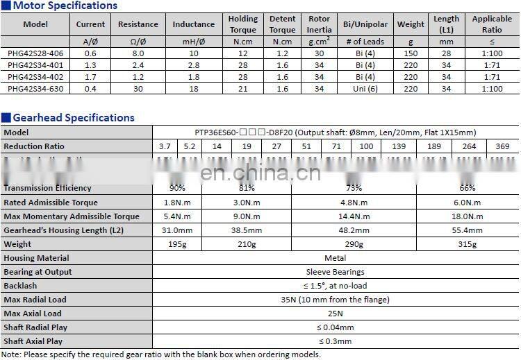 PrimoPal's PHG series hybrid stepper gearmotor offers a wide range of gear ratios to fulfill your project needs. The planetary gearhead (transmission series) and spur gearbox have been strictly tested to ensure long life and maximum efficiency. They are low-cost solutions and can perfectly meet your needs of motion or automation control. Besides, high precision gearhead, custom motor winding and gearhead specs are also available.